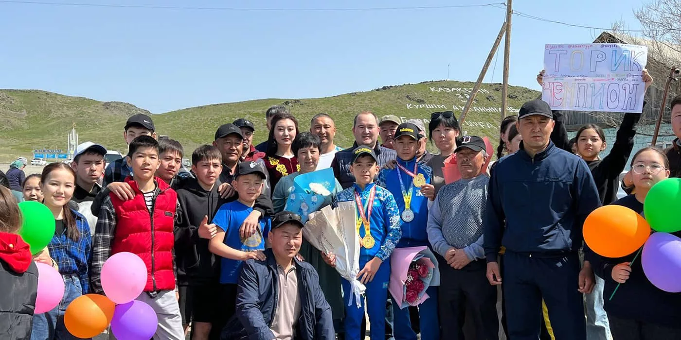 Юных чемпионов Казбекова Торежана и Кумаргазы Алдияра торжественно встретили на малой Родине в Курчумском районе Восточно-Казахстанской области. Учащиеся 7 класса завоевали золото первенства Азии в Дубае.