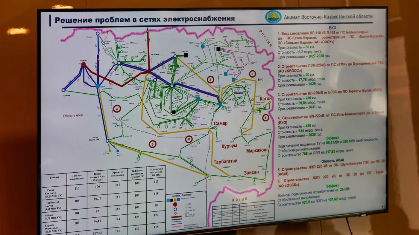 На совещании в областном акимате были подробно рассмотрены вопросы модернизации энергетического и коммунального сектора Восточно-Казахстанской области. По итогам обсуждения аким ВКО Нурымбет Сактаганов обозначил ключевые приоритеты и дал конкретные поручения, направленные на повышение надежности теплоснабжения и электроснабжения, прежде всего в областном центре и приграничных районах.