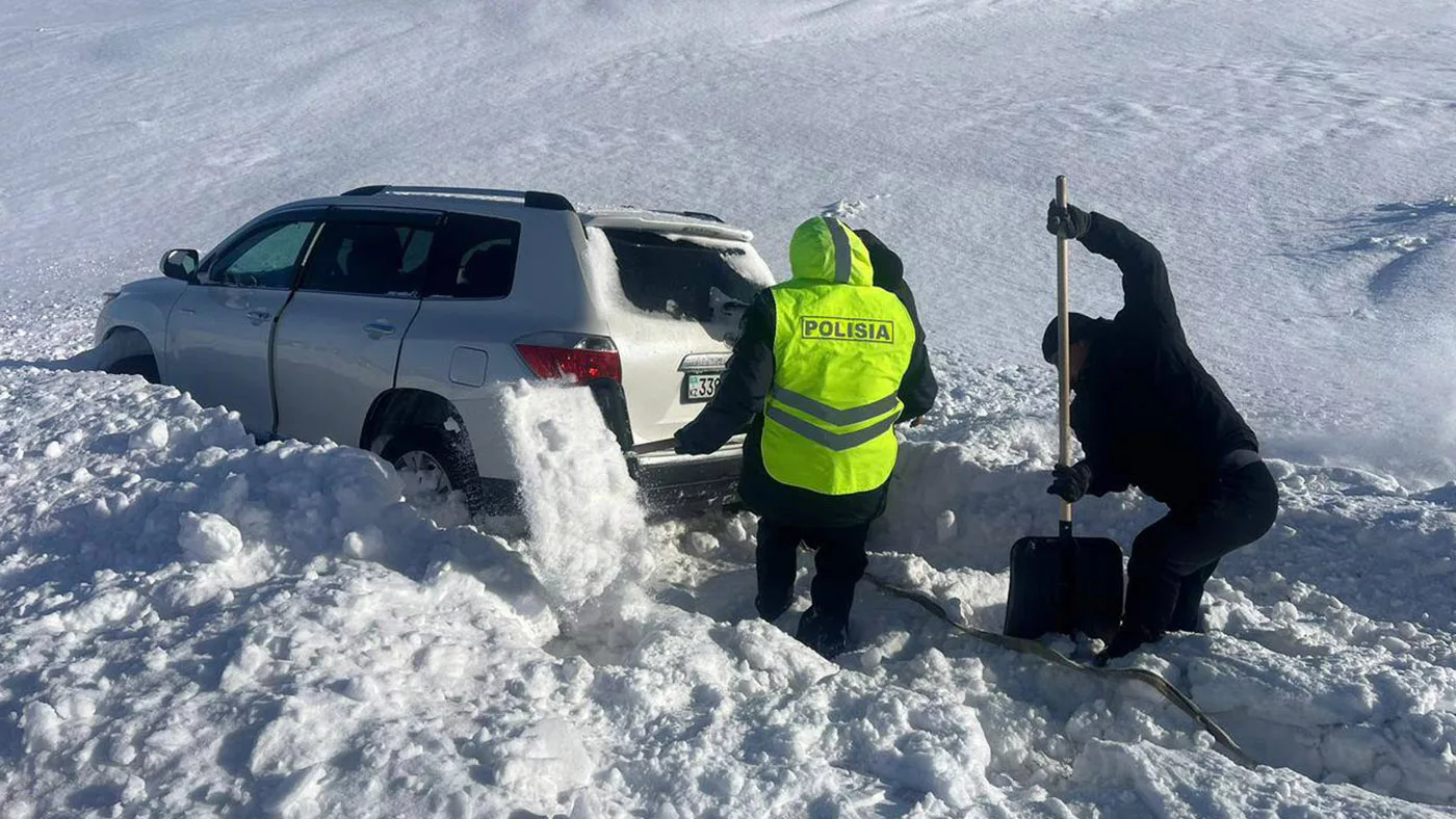 На помощь первыми прибыли сотрудники полиции — старший лейтенант, инспектор патрульной полиции Нурасыл Кабылкаков и старший лейтенант, инспектор группы по охране природы Ришат Ахметов. Оценив ситуацию, они приступили к расчистке снега вокруг автомобиля, освободили колеса и подготовили подъезд для техники.