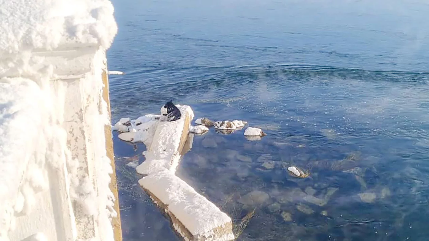 В Усть-Каменогорске спасатели помогли собаке, замерзающей на бетонной плите в Иртыше