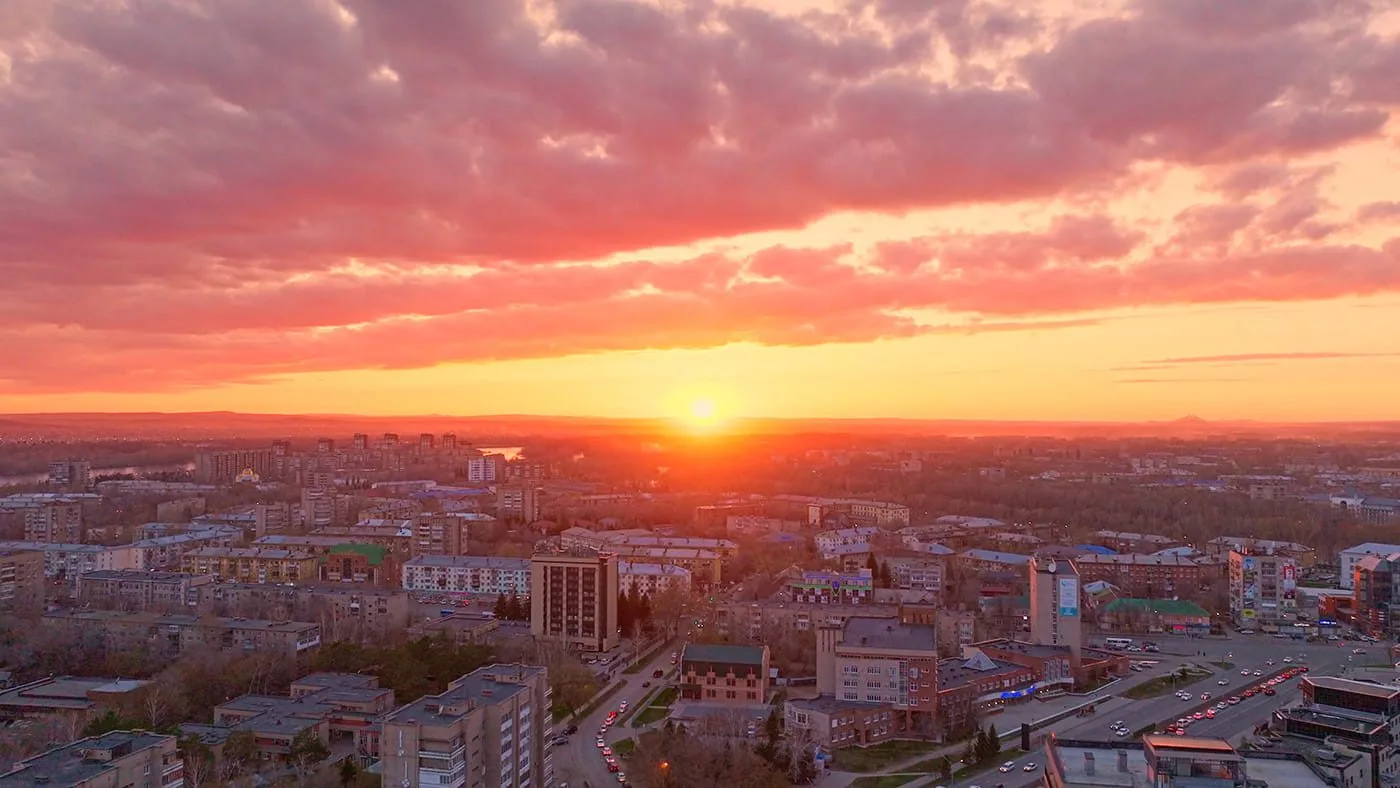 В Усть-Каменогорске закат нежно гаснет,