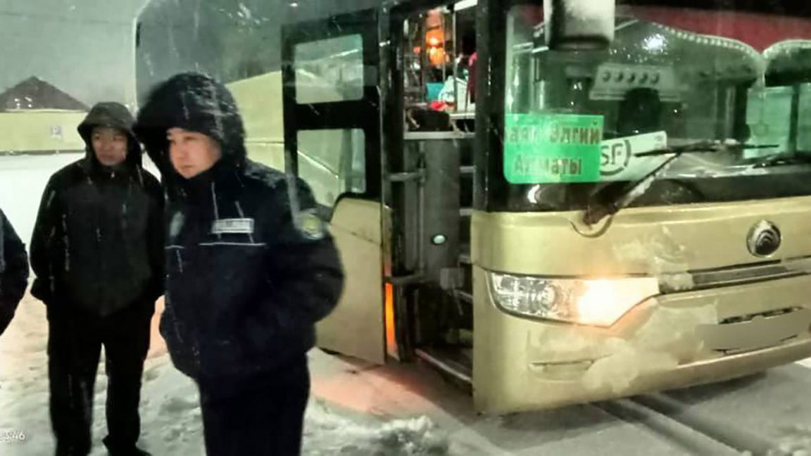 Сильный буран перекрыл трассу «Алматы – Өскемен» и задержал автобус, направлявшийся из Монголии в Алматы, на остановке в городе Аягоз.