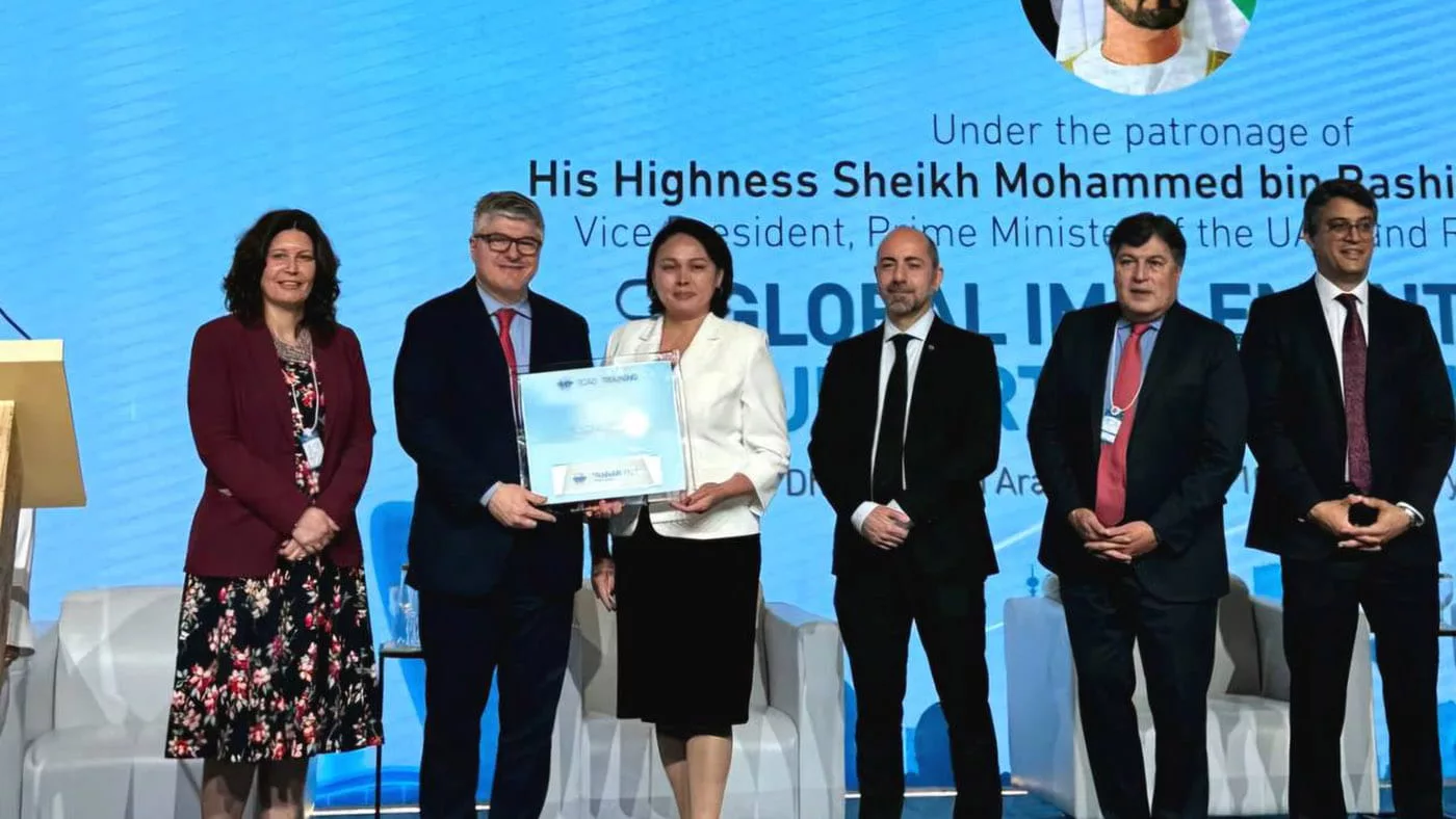 На глобальном симпозиуме ИКАО, состоявшемся в г.Абу-Даби (ОАЭ), Генеральный секретарь ИКАО Хуан Карлос Саласар вручил директору Центра профессиональной подготовки Уртембаевой Жанат почетный знак, подтверждающий признание статуса PLATINUM. Данный статус является самым высоким среди участников программы ИКАО TRAINAIR PLUS.