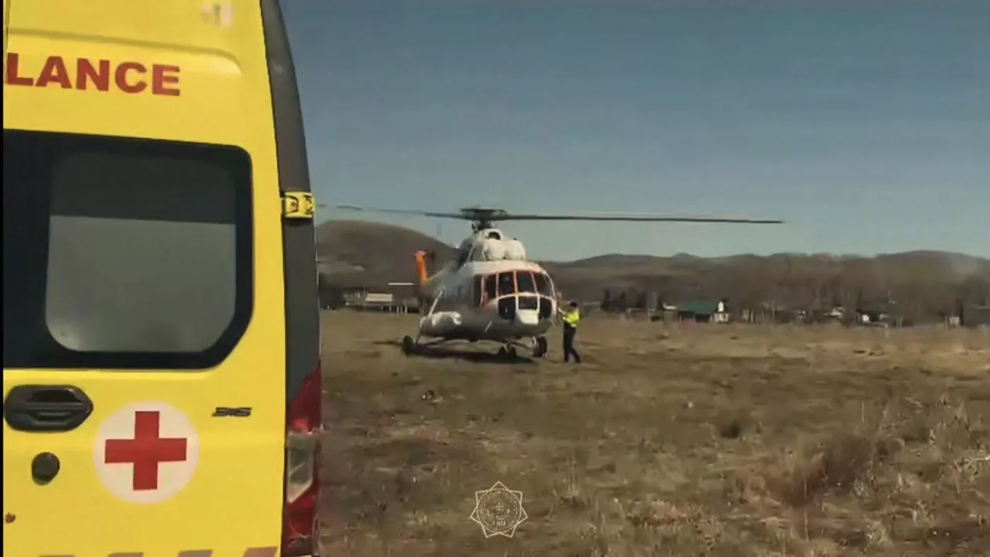 Пилоты АО «Казавиаспас» МЧС РК Руслан Агланбеков и Олег Алфеев на вертолете «МИ-8» с бригадой санавиации — врачом Римом Мендыбаевым и фельдшером Татьяной Сергеевой экстренно транспортировали из города Риддер в Усть-Каменогорск девятнадцатилетнего пациента.