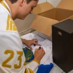 Сегодня во Дворце спорта им. Б. Александрова воспитанники хоккейной школы «Торпедо», а также их тренеры и родители стали одними из первых, кто мог сфотографироваться с главным трофеем КХЛ — Кубком Гагарина. Напомним, вчера его привёз в Усть-Каменогорск наш земляк, выходец из «Торпедо», нападающий ХК «Металлург», а ныне игрок клуба «Барыс» Максим Мухаметов.